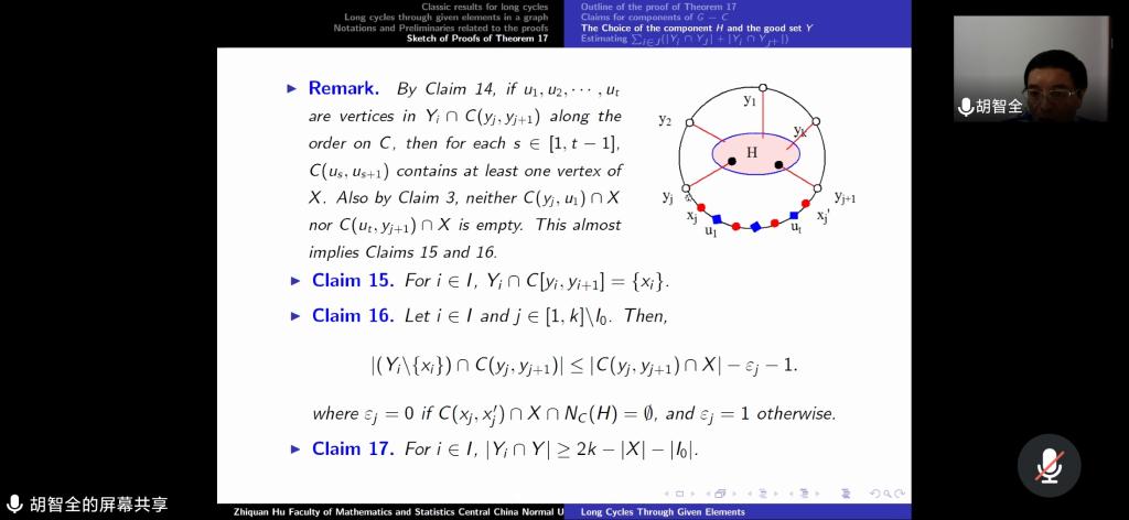 应我院邀请,8月3日上午,华中师范大学胡智全教授在腾讯会议作了题为《Long cycles in graphs passing through given elements》的报告。相关师生聆听了此次报告,报告由卢福良教授主持。